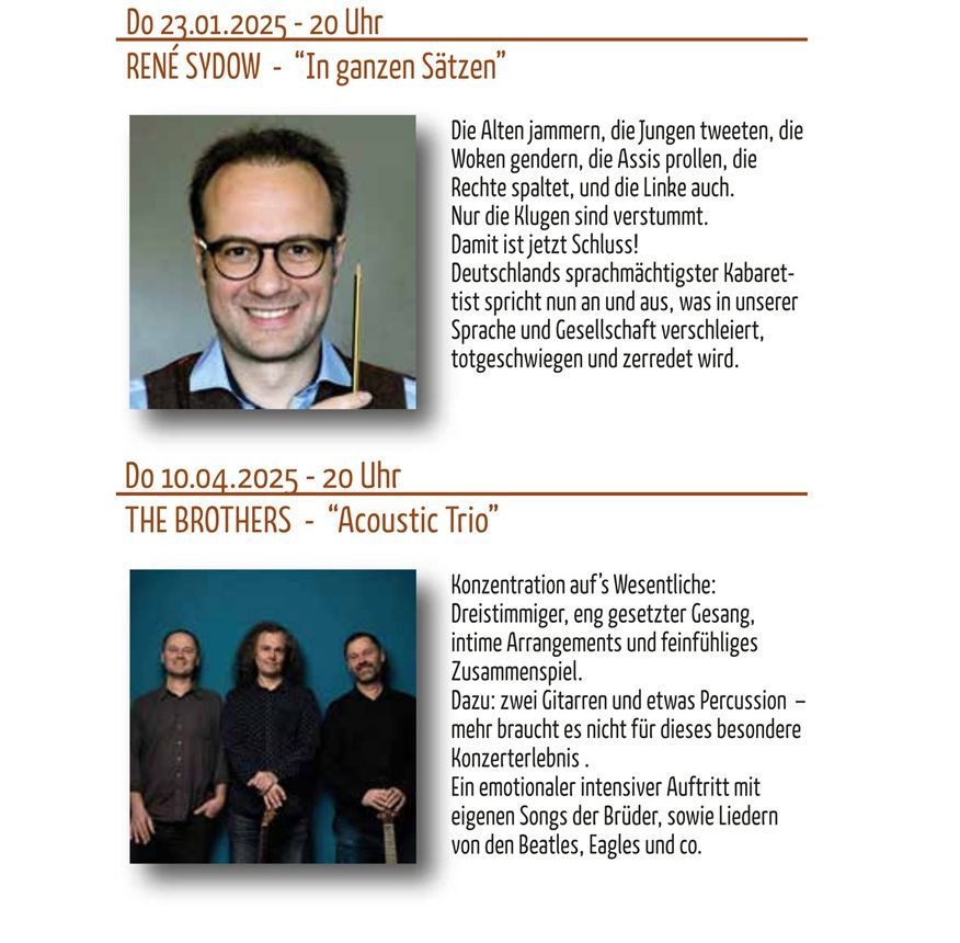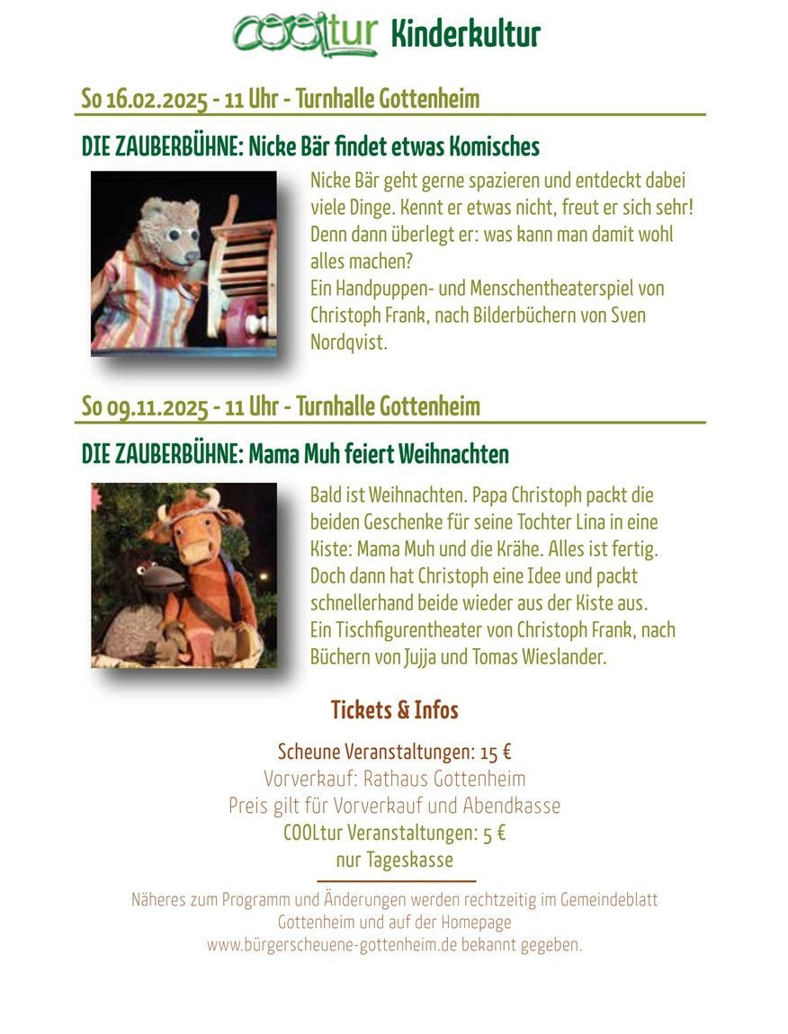 Einlass ist jeweils ab 19 Uhr. Veranstaltungsort ist die Bürgerscheune in Gottenheim Eingang im Rathaushof, Hauptstrasse 25.